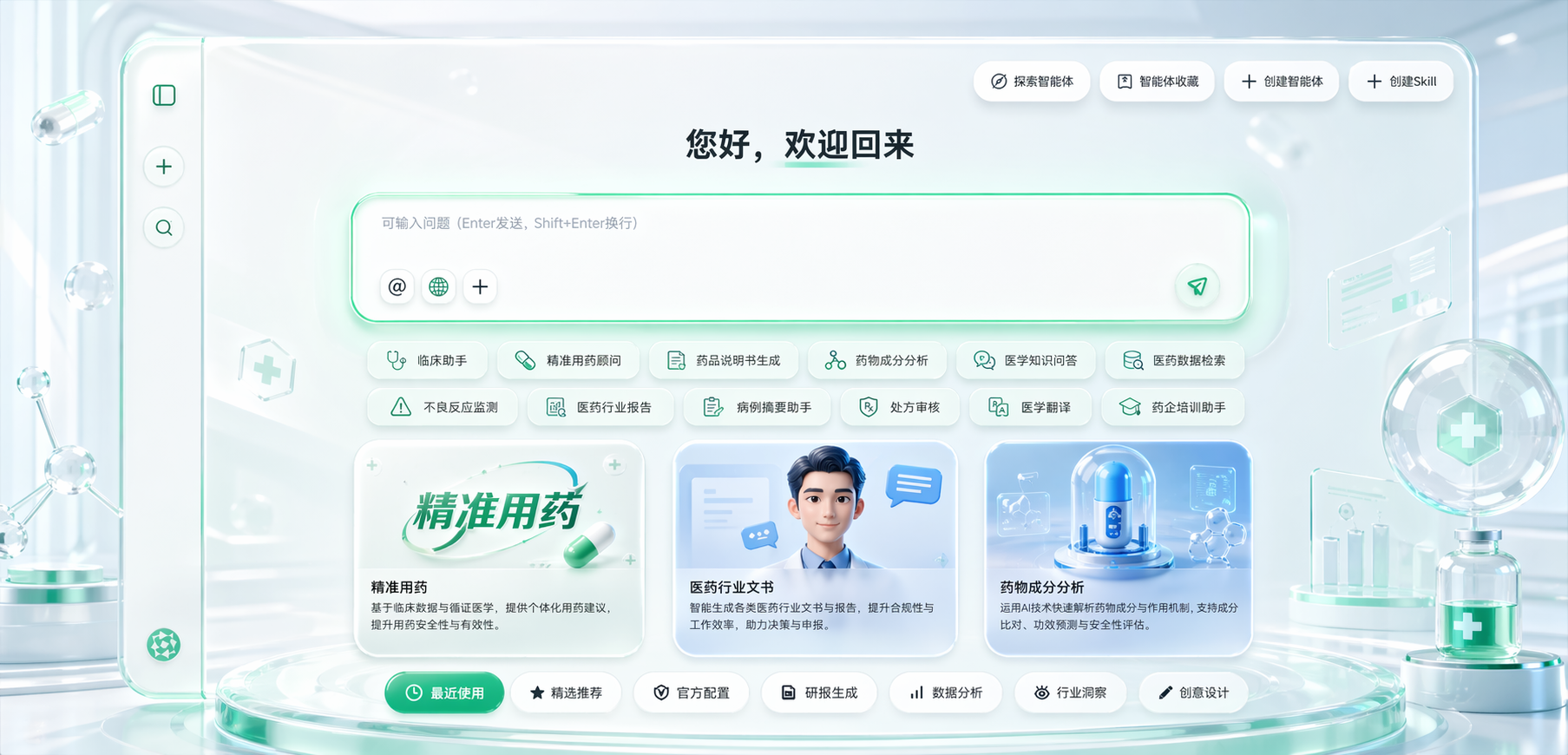 自研模型专注医药垂类领域,去除冗余能力,计算更高效、部署更灵活,更符合药企实际需求。